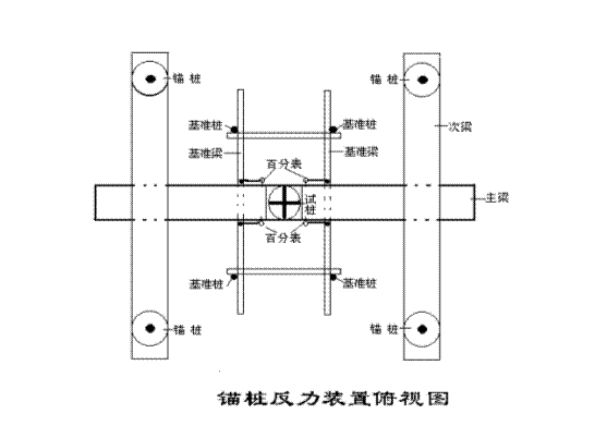 錨樁反力裝置就是將被測樁周圍對稱的幾根錨樁用錨筋與反力架連接起來,依靠樁頂的千斤頂將反力架頂起,由被連接的錨樁提供反力,提供反力的大小由錨樁數量,反力架強度和被連接錨樁的抗拔力決定。錨樁反力裝置一般不會受現場條件和加載噸位數的限制,當條件允許,采用工程樁作錨樁是最經濟的。