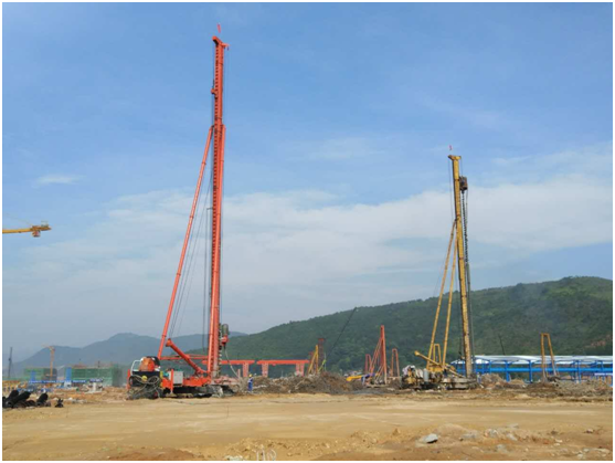 本工程2017年6月30日開始施工,于2018年2月7日竣工,共計完成樁徑500mm,樁長22m-35m,樁數5212根,混凝土強度為C25,混凝土方量29432m³。高峰期時投入長螺旋鉆機7臺套,挖掘機3臺。