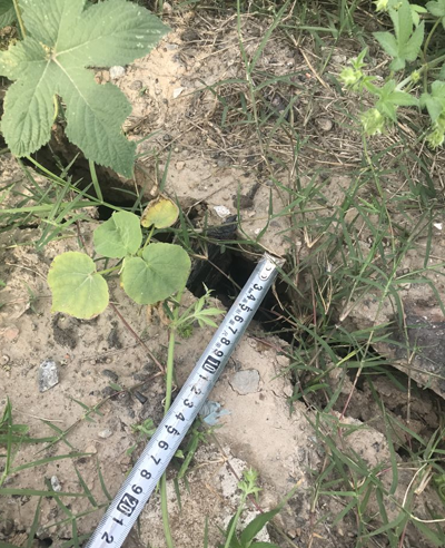 對壩體頂部地面裂縫進行封閉,封閉可采用二八灰土,并夯實處理,防止降雨入滲使得裂縫進一步擴展,并在坡頂設置排水溝,防止進一步入滲。