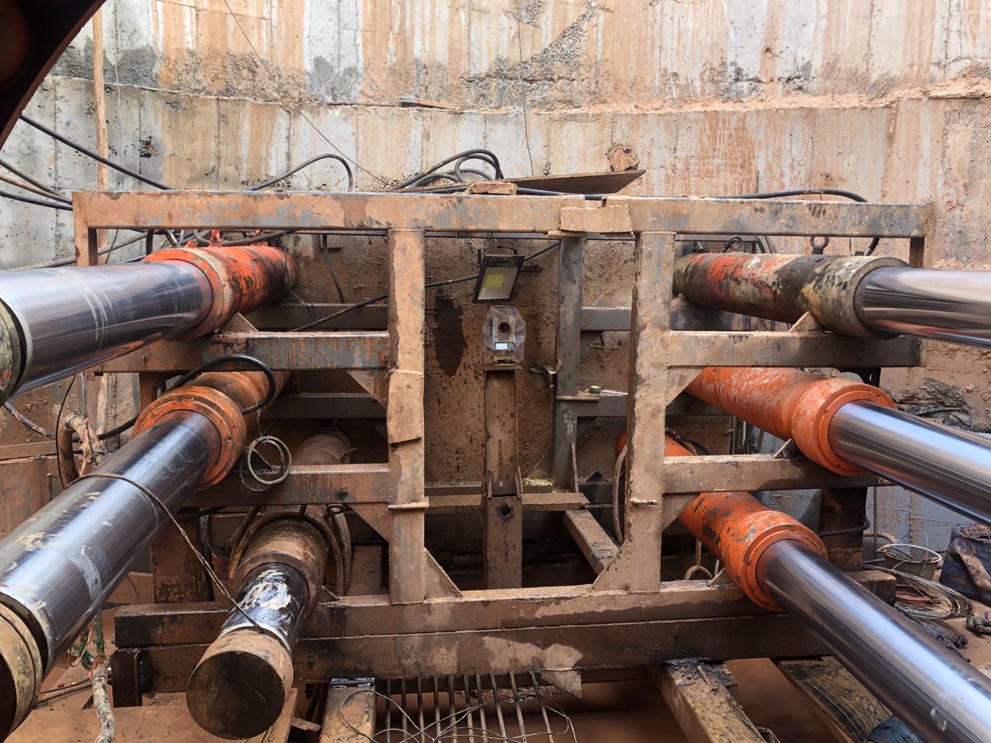 頂進用工作井頂進設備進行速度控制,分為兩個部分,機頭入洞階段要嚴格控制速度,此階段重點是找正管子中心、高程,偏差控制在±5mm之內,所以速度不要太快。