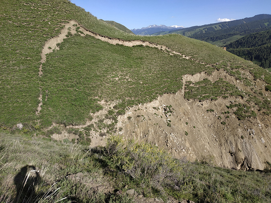 山體滑坡:白楊溝豐源煤礦生產(chǎn)調(diào)度樓北側(cè)邊坡出現(xiàn)了滑坡,滑坡體表面巖土體松散,在降雨條件下有進(jìn)一步發(fā)生滑坡的可能。滑坡坡腳下有安全生產(chǎn)調(diào)度樓等建(構(gòu))筑物,如果再次發(fā)生滑坡,會(huì)危及生產(chǎn)調(diào)度樓及其周圍建筑物的人員生命和財(cái)產(chǎn)安全,因此需要對(duì)該滑坡進(jìn)行勘查及治理,保證人員生命和財(cái)產(chǎn)安全。