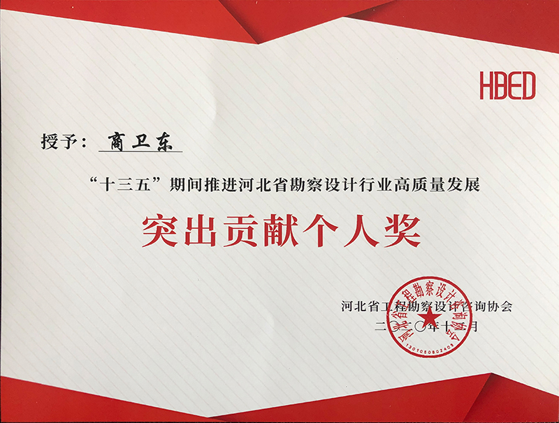 由河北省工程勘察設計咨詢協會評選,公司榮獲“十三五”期間推進河北省勘察設計行業高質量發展突出貢獻單位,韓立君董事長、李華偉總經理、商衛東主任榮獲“十三五”期間“推進河北省勘察設計行業高質量發展突出貢獻個人”。