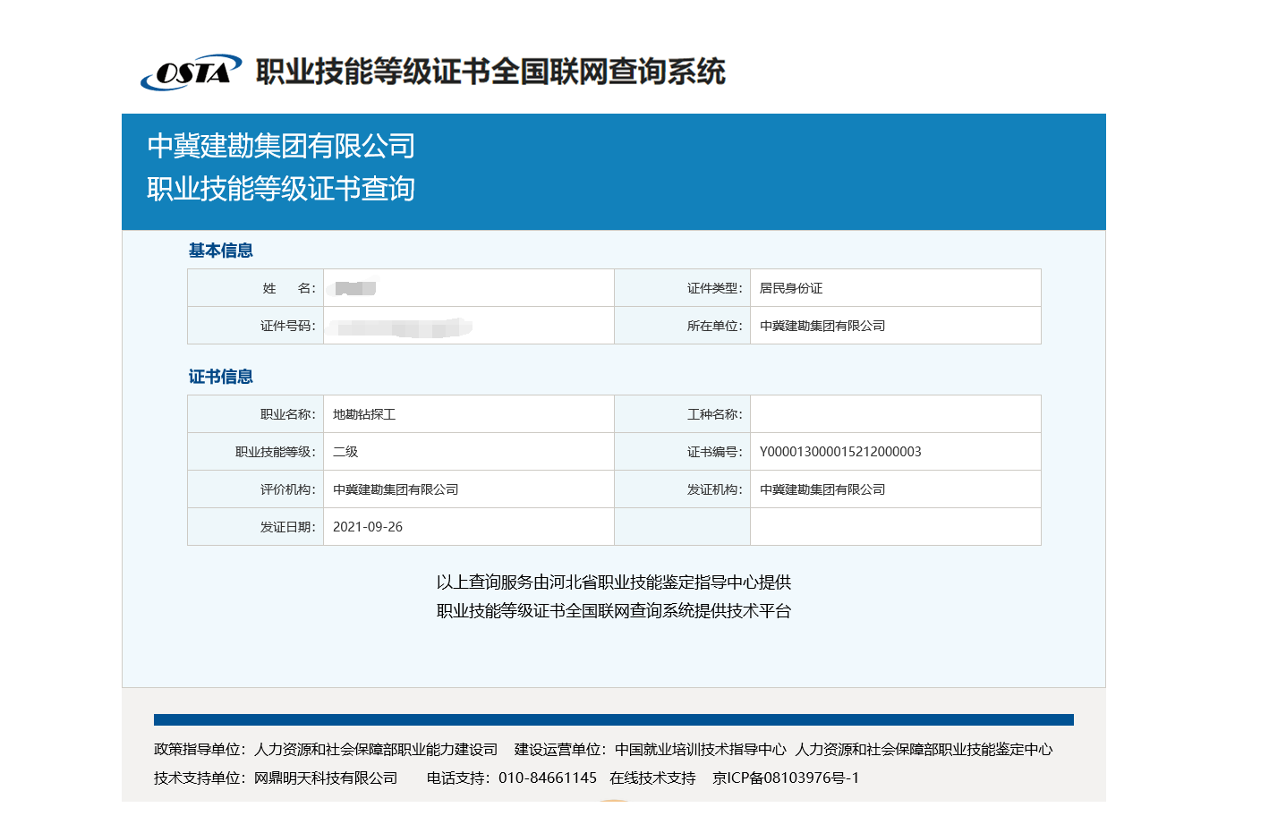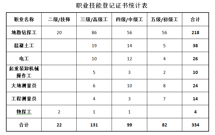 根據《國家職業技能標準》,公司按照取得的職業技能等級認定范圍,結合公司制度及內部認定的工人技術等級情況,制定了《中冀建勘集團有限公司職業技能等級套改方案》,組織開展了334名技術工人職業技能等級認定工作,取得了職業技能等級證書。同時,根據政府相關政策,申請取得了相應的補助資金。