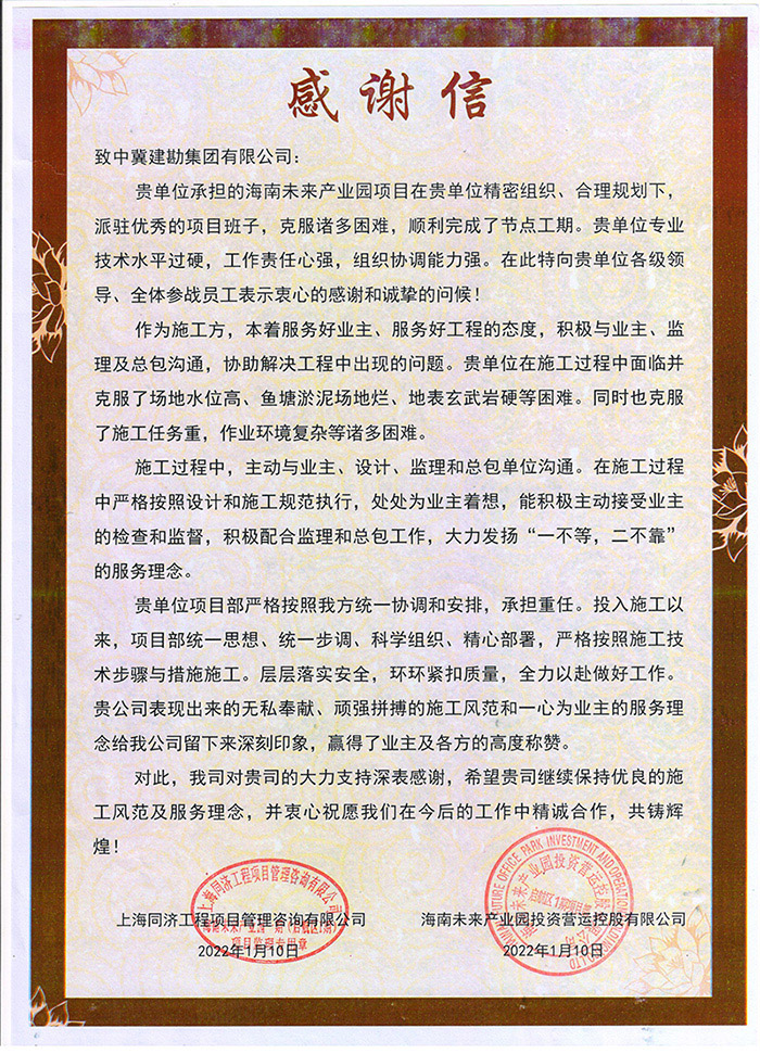 天津鐵廠有限公司煉鐵廠對我公司在疫情期間為確保項目目標迎難而上、攻堅克難的精神表示贊賞,對我公司一如既往的支持和客戶至上的理念表示感謝。中儲糧河北黃驊直屬庫有限公司對我公司的勘察報告、后續驗收服務表示贊許,對公司提供的科學嚴謹、技術精湛、敬業擔當的專業支持和幫助表示感謝。