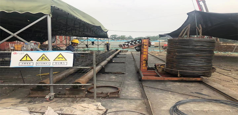 本工程自2021年2月21日開工,2022年3月21日完工,總歷時375天。2021年5月進入施工高峰期,使用旋挖鉆機9臺,每日完成樁數約 70根。由于測放樁位的工作量大,采用全站儀測放效率較低,影響施工進度,經研究引進了智能打樁系統。在引進智能打樁系統后,先與全站儀測放的樁位進行對比測試,對其測放樁位的精度和效率進行了驗證,滿足精度要求,并在項目實施過程中及時總結使用經驗,為進一步推廣智能化打樁系統的應用打好基礎。本工程在鋼筋籠制作方面,采用了3臺滾籠機進行箍筋纏繞工作,提高了工作效率并減少了人員投入,保證了施工進度需要。