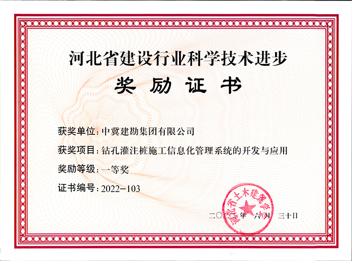 一等獎1項:鉆孔灌注樁施工信息化管理系統(tǒng)的開發(fā)與應用