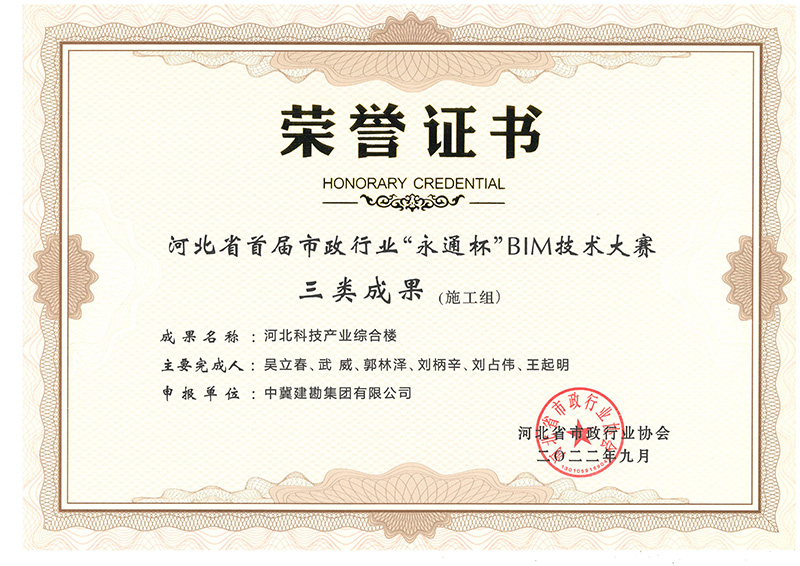 公司兩項工程技術成果在河北省首屆市政行業 “永通杯”BIM技術大賽中喜獲殊榮