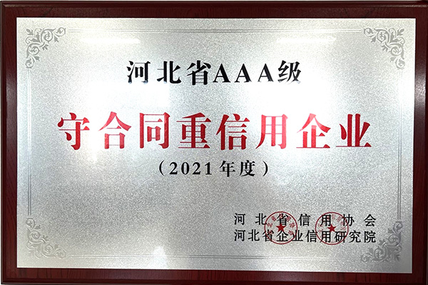 根據(jù)河北省信用辦、河北省信用協(xié)會(huì)等七部門印發(fā)的《關(guān)于開展“推進(jìn)誠信建設(shè)共建信用河北”的活動(dòng)方案》的通知及《關(guān)于2021年度河北省“守合同重信用”企業(yè)申報(bào)認(rèn)定工作的通知》,我公司被評(píng)為“河北省誠信共建企業(yè)”和“河北省AAA級(jí)守合同重信用企業(yè)”。