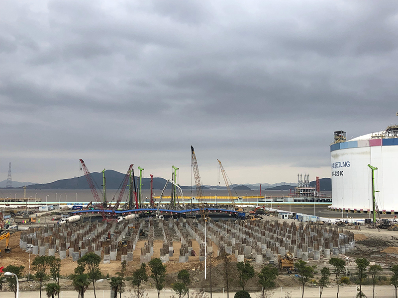 浙江LNG接收站二期工程項(xiàng)目是國家天然氣產(chǎn)供儲銷體系重點(diǎn)建設(shè)工程,項(xiàng)目在一期工程基礎(chǔ)上新增三座16萬方LNG儲罐及配套工藝設(shè)施。我公司承擔(dān)了3座16萬方儲罐的工程樁施工任務(wù),工程樁于2018年7月5日開工,2018年11月29日完工,工程質(zhì)量一次驗(yàn)收全部合格,其中E罐工程樁Ⅰ類樁率99.5%,D、F罐工程樁Ⅰ類樁率98.05%。