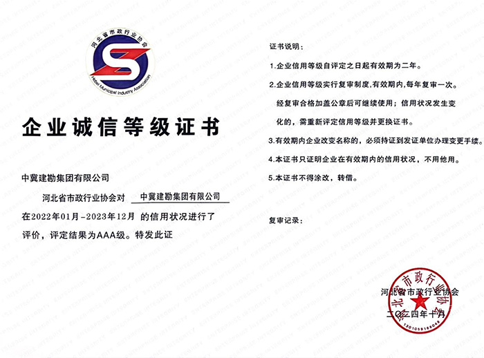 集團公司榮獲“河北省市政行業AAA級誠信企業”榮譽稱號