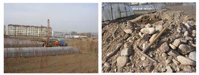 根據(jù)勘察場區(qū)以碎石土為主的特點(diǎn),以鉆探為主,輔以井探、深層平板載荷試驗(yàn)、面波測試、地微振測試、孔內(nèi)波速測試、重型動(dòng)力觸探試驗(yàn)、標(biāo)準(zhǔn)貫入試驗(yàn)等原位測試手段。在探井內(nèi)采取大體積土樣對碎石土進(jìn)行準(zhǔn)確定名,采用超重型動(dòng)力觸探、深層平板載荷試驗(yàn)準(zhǔn)確提供碎石土的承載力。勘察中首次用面波法查明了整個(gè)場地?zé)o暗藏的河道、溝浜、墓穴,為地基均勻性評(píng)價(jià)及建筑地基基礎(chǔ)方案的科學(xué)選擇奠定了基礎(chǔ)。