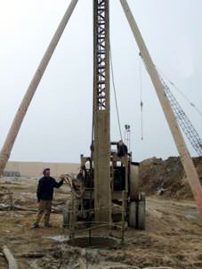 針對上述要求,工程現(xiàn)場采取以下針對措施:①由于花崗巖強度較高,沖擊鉆成孔速度慢,可能對成樁質量產(chǎn)生影響。因此結合以往工程經(jīng)驗,根據(jù)本工程地層特點,制定了比較切合實際的施工操作參數(shù),提高了成孔施工速度,確保單樁成樁總體時間符合設計要求。②現(xiàn)場加工了兩套清孔裝置,有效地提高清孔速度和質量,保證了沉渣厚度滿足設計要求的不大于5cm。③在沖擊鉆頭焊上取樣器,解決了地層鑒定需要樣品的問題。