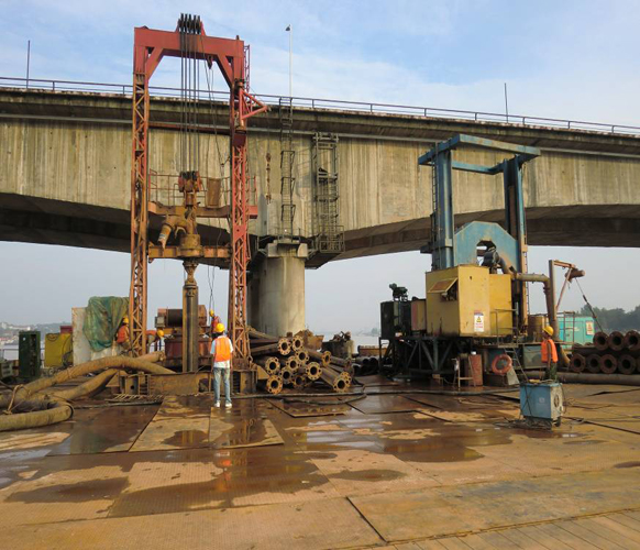 本工程是石長鐵路的復線工程,橋址位于湖南省常德市。施工時間為2010年5月31日至2010年12月31日。采用GF300、ZSD300型回轉鉆機、TR400C旋挖鉆機及YCJF-250型沖擊反循環鉆機成孔,泥漿護壁工藝。共完成Φ1.8m~Φ2.5m基樁38根,混凝土灌注量8000余方。