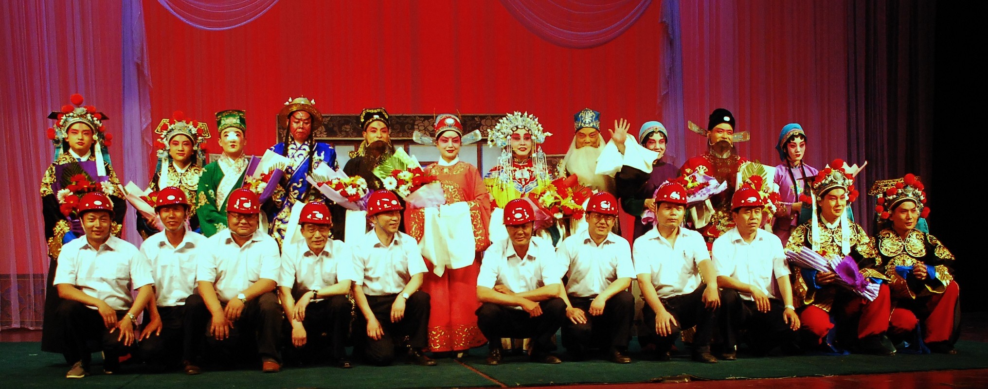 隨著石家莊市重點文化建設項目“石家莊市霞光大劇院(演藝中心)”工程的開工實施,我水資源環境公司承擔了該項目的基坑開挖和支護工程。作為該項目的建設者,2013年5月16日晚,我公司受邀參加觀看了由項目業主石家莊市演藝公司主辦的演出活動。節目開始前,我公司代表上臺接受了主辦方的獻花致敬,并興致勃勃的觀看了精彩的傳統經典評劇演出,在演出后還與全體演員進行了合影留念,度過了一個愉快的夜晚。